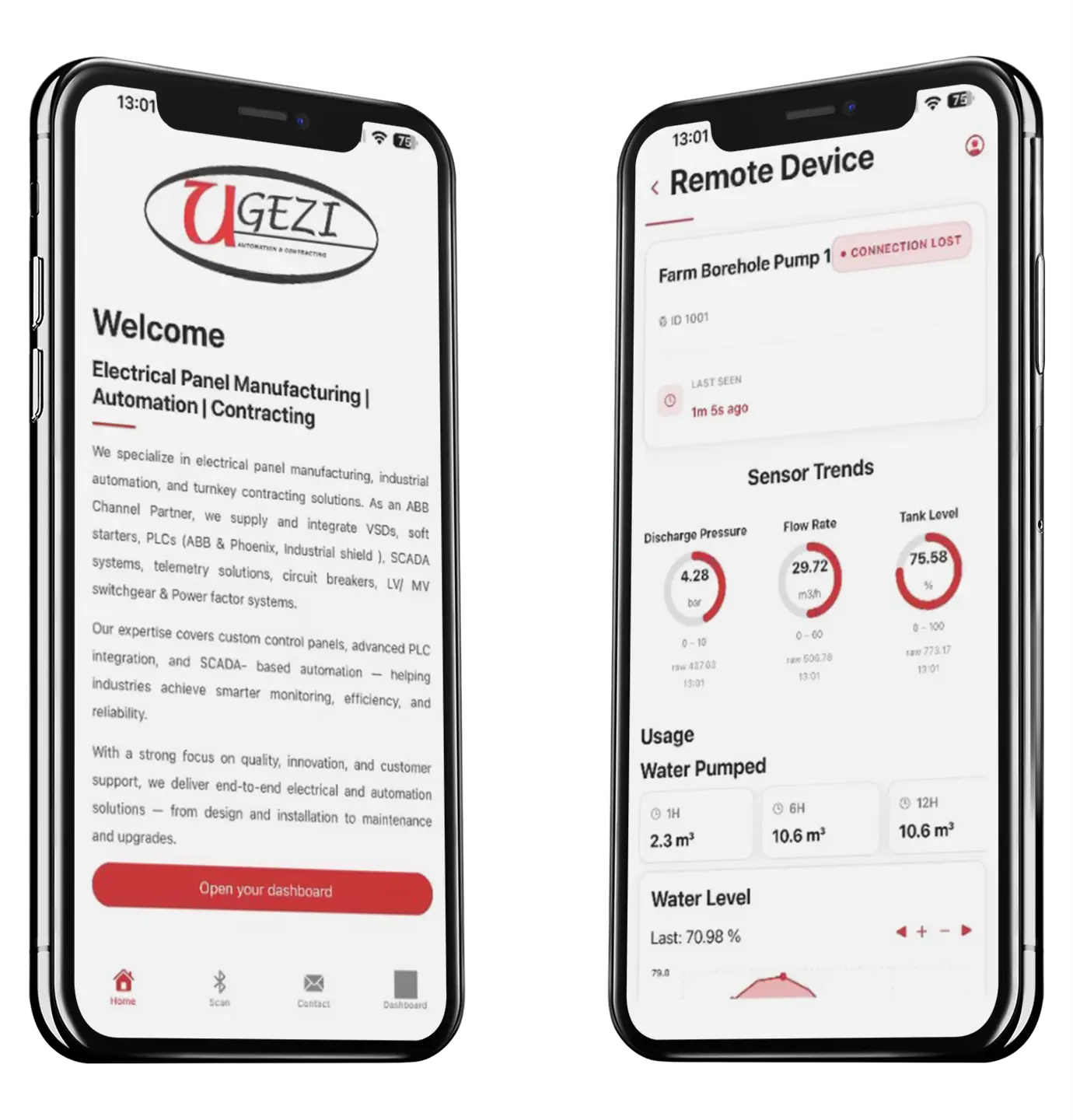Built around our custom-engineered PLC systems, the Ugezi platform provides seamless integration between your equipment and a secure, user-friendly mobile interface.